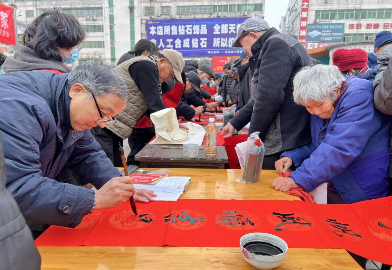 寫(xiě)春聯(lián)貼春聯(lián)是中國(guó)的一種傳統(tǒng)習(xí)俗,無(wú)城鎮(zhèn)積極傳承和傳播優(yōu)秀傳統(tǒng)文化,開(kāi)展寫(xiě)春聯(lián)送春聯(lián)活動(dòng),為即將到來(lái)的春節(jié)增添了喜慶氣氛。無(wú)城鎮(zhèn)皇武社區(qū)聯(lián)合無(wú)為市老年書(shū)畫(huà)家在人民廣場(chǎng)開(kāi)展“揮毫送春聯(lián) 墨香贈(zèng)萬(wàn)家”新時(shí)代文明實(shí)踐志愿服務(wù)活動(dòng)。無(wú)城鎮(zhèn)金河社區(qū)以萬(wàn)家暨“春聯(lián)連鄰里,情暖進(jìn)萬(wàn)家”為主題開(kāi)展寫(xiě)春聯(lián)送祝福志愿服務(wù)活動(dòng)。無(wú)城鎮(zhèn)龍?jiān)粕鐓^(qū)開(kāi)展以“紅紅火火過(guò)大年:鄰里關(guān)愛(ài)迎新年 知識(shí)競(jìng)猜賀新春”為主題的特色新年活動(dòng),旨在通過(guò)競(jìng)賽的方式將傳統(tǒng)文化送到基層群眾心中。