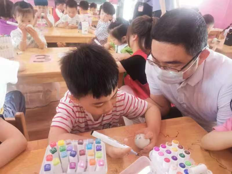 活動(dòng)主要通過給孩子們講解端午節(jié)的由來和風(fēng)俗,并讓孩子們嘗試在咸鴨蛋上面彩繪粽子表情包,孩子們拿起畫筆,蘸上五顏六色的顏料,在一顆顆鴨蛋殼上涂滿彩色顏料,鴨蛋一下子變得生動(dòng)起來。手拿自己的彩蛋DIY作品,小朋友們說:“媽媽說粽子飄香端午到,我在鴨蛋上畫了兩個(gè)粽子,祝大家端午安康!”一個(gè)個(gè)精美的DIY作品,承載著大家對(duì)端午民俗美好的愿望。