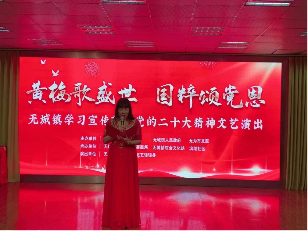 11月21日下午,無城鎮(zhèn)《黃梅歌盛世 國粹頌黨恩》在濱湖社區(qū)三樓活動室舉行。