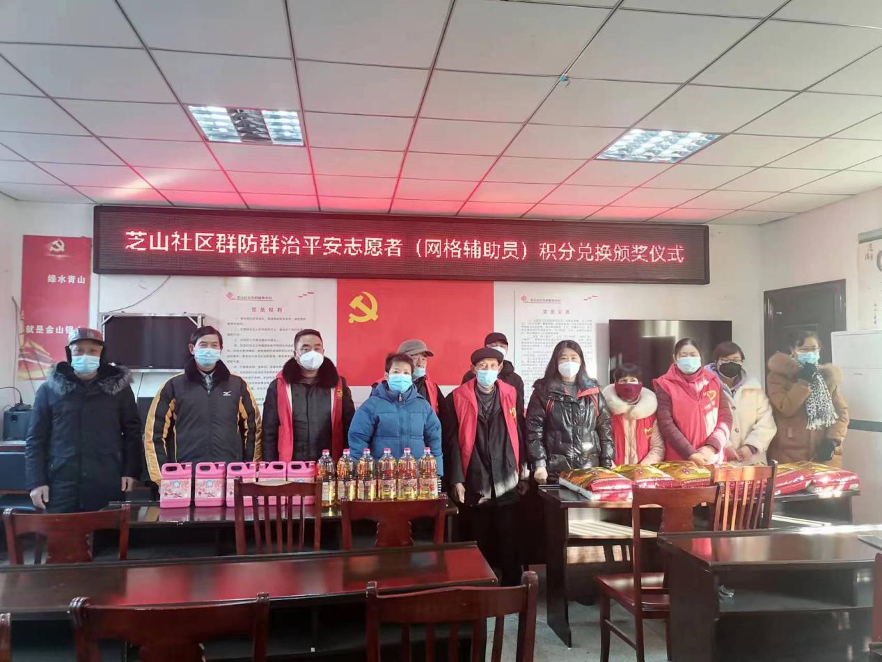 1月4日,芝山社區(qū)開(kāi)展群防群治平安志愿者(網(wǎng)格輔助員)積分兌換頒獎(jiǎng)儀式,各網(wǎng)格選聘的15名平安志愿者(網(wǎng)格輔助員)參會(huì)。