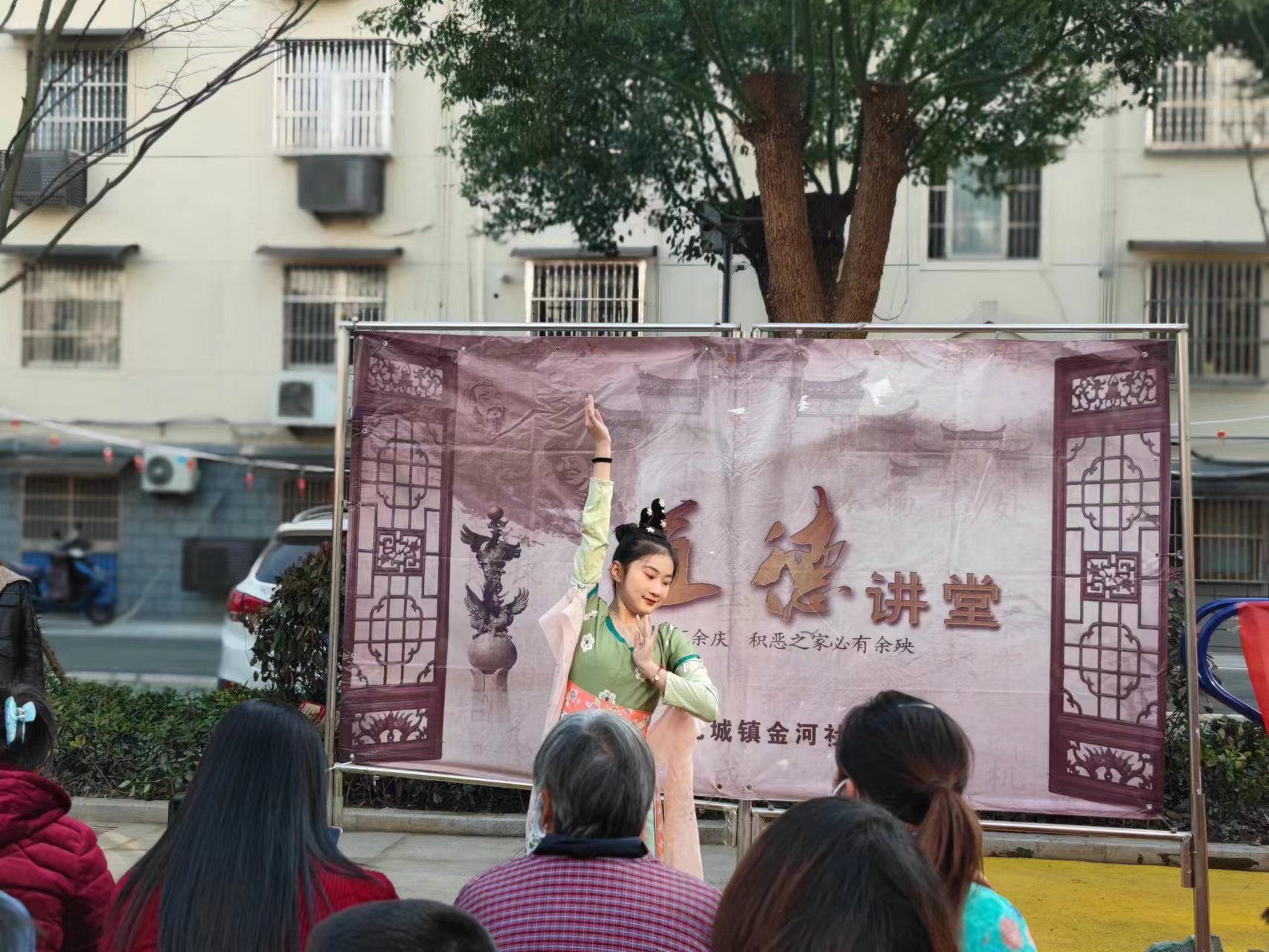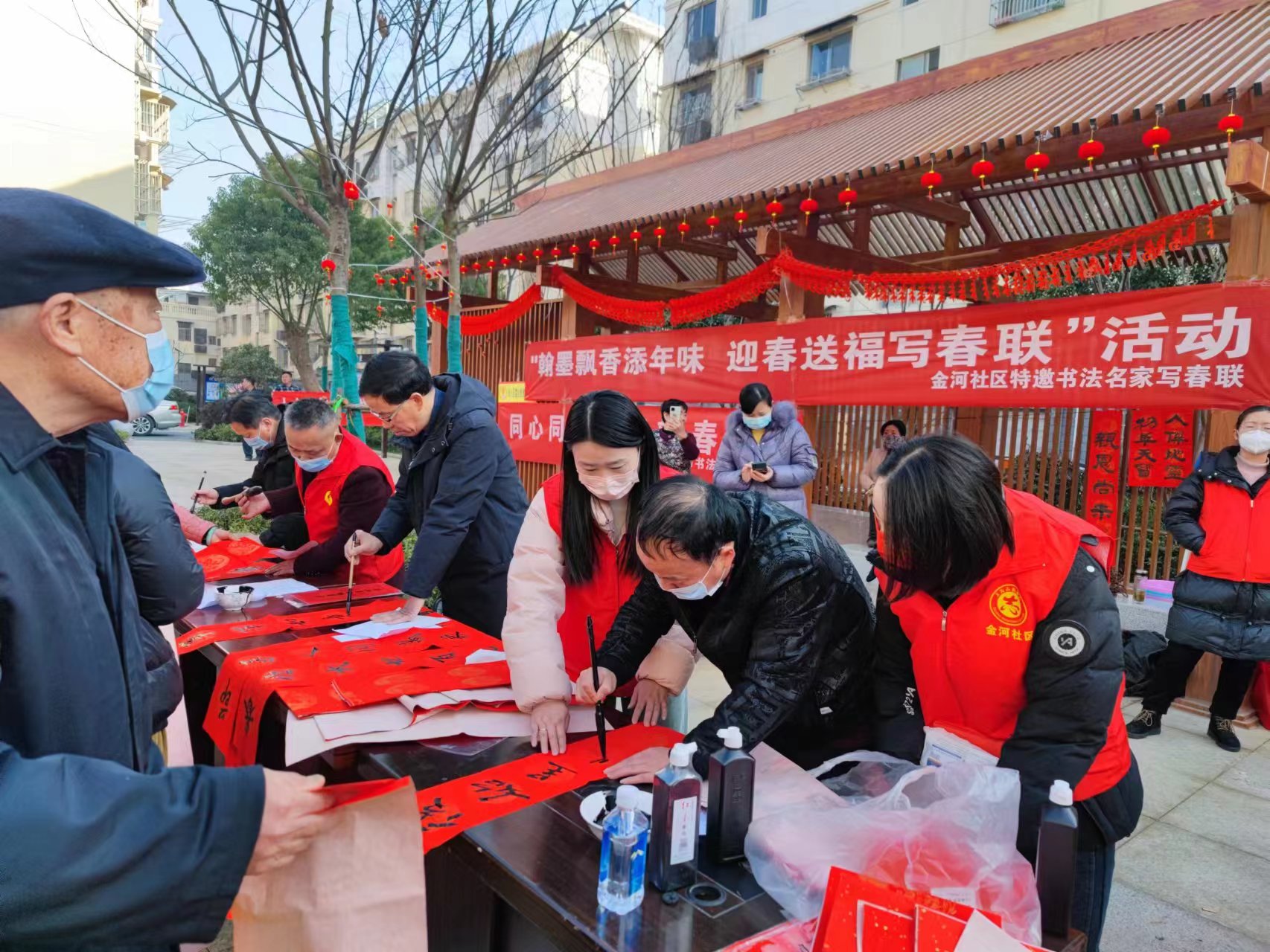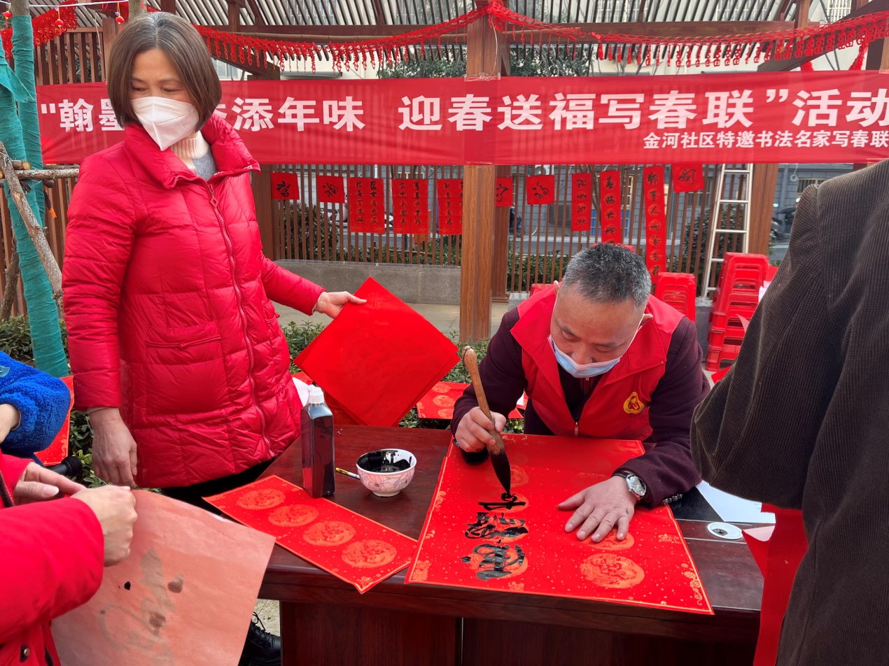 此次活動(dòng)在府苑小區(qū)廣場舉辦,現(xiàn)場設(shè)立多個(gè)小會(huì)場。主要包括邀請蕪湖市知名書法家們現(xiàn)場為居民免費(fèi)義寫春聯(lián)、送春聯(lián)的活動(dòng),現(xiàn)場只見書法老師們傾情揮墨,一幅幅風(fēng)格多樣、祝福滿滿的春聯(lián)和“福字”呈現(xiàn)在大家眼前?;顒?dòng)現(xiàn)場人頭攢動(dòng),氣氛熱烈,連連稱贊,個(gè)個(gè)都拿到自己心儀的“春聯(lián)”喜笑顏開。另金河社區(qū)將新年的首次道德講堂也在同時(shí)開展,讓大家宣傳身邊的好人好事,倡導(dǎo)人人爭做道德建設(shè)的參與者和先行者,展風(fēng)采環(huán)節(jié)更是有表演者現(xiàn)場表演古典舞蹈。