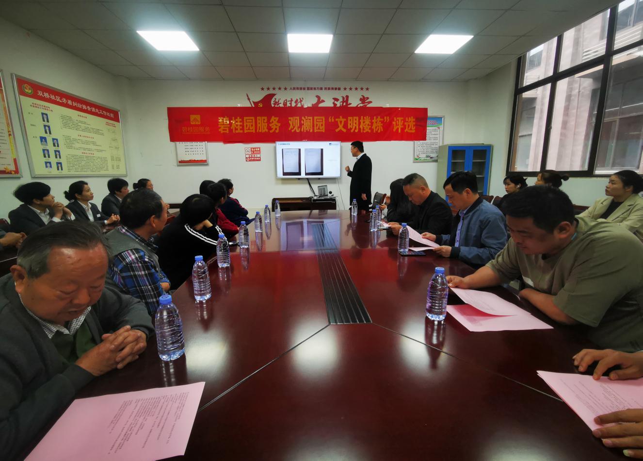 活動現(xiàn)場,住建局俞亞平主任、張榮飛主任,物業(yè)協(xié)會李勁松會長,雙橋社區(qū)網(wǎng)格員及觀瀾園業(yè)主代表均準(zhǔn)時到場。觀瀾園物業(yè)負(fù)責(zé)人王佳佳介紹評選標(biāo)準(zhǔn)包括:樓道無亂堆亂放的雜物、無亂扔果皮、煙頭、紙屑等現(xiàn)象;樓內(nèi)住戶未發(fā)生鄰里糾紛,鄰里和諧;樓內(nèi)住戶遵紀(jì)守法,未發(fā)生治安案件等。物業(yè)客服條線負(fù)責(zé)人孫福佳講解“觀瀾園評選文明樓棟”PPT,著重將觀瀾園現(xiàn)場各方面呈現(xiàn)在大家眼前。