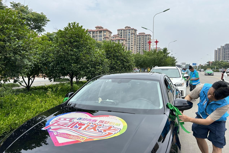 每一位愛心車主都愿以實際行動給予考生力所能及的關(guān)心和幫助,讓象征愛心助考的綠絲帶,成為高考期間無為大街小巷一道亮麗的風(fēng)景線!