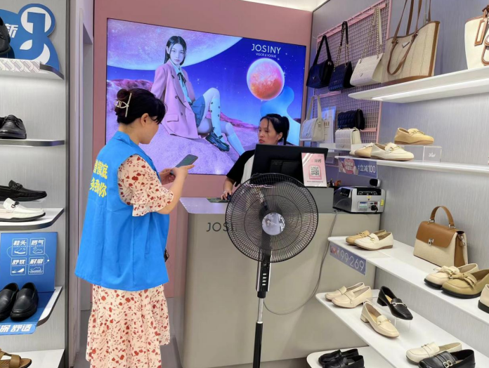 經(jīng)濟普查員向商家詢問具體情況進行系統(tǒng)錄入