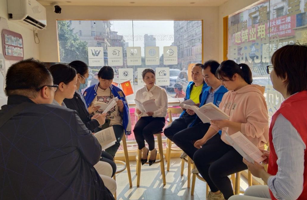 圖為黨總支書記在“紅鄰驛站”開展“共學(xué)微課堂”