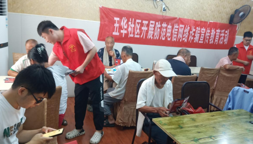 宣傳過程中,五華社區(qū)志愿者向這些老年群體,耐心科普如何預防養(yǎng)老詐騙,以通俗易懂的語言、生動有趣地講解身邊的真實案例,并向老人們詳細介紹識別防范技巧,幫助老年群體增強風險防范意識,不要貪圖小便宜,遇到來路不明的電話或手機短信,要及時掛斷、不要回復手機短信,多與子女商量,不給詐騙分子進一步設置圈套的機會,捂緊自己“錢袋子”。借此機會也向老年人們開展道路交通安全、防溺水、防火防盜等安全知識宣傳。