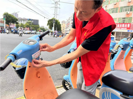 活動開始前,志愿者們早早來到社區(qū)樓下集合,在社區(qū)工作人員的帶領(lǐng)下來到老南門車站斜對面的共享單車停車點,將馬路中亂停放的共享單車有序擺放在停車位。并對單車進行清潔,大家同心協(xié)力,忙得熱火朝天,經(jīng)過大家的努力,讓它們的面貌煥然一新。