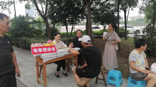 8月19日,濱湖社區(qū)在居民乘涼點擺攤設點,召開現場議事會,向居民群眾征集掃黑除惡各類信息,向老人們進行反電信詐騙宣傳,并現場調解矛盾糾紛。