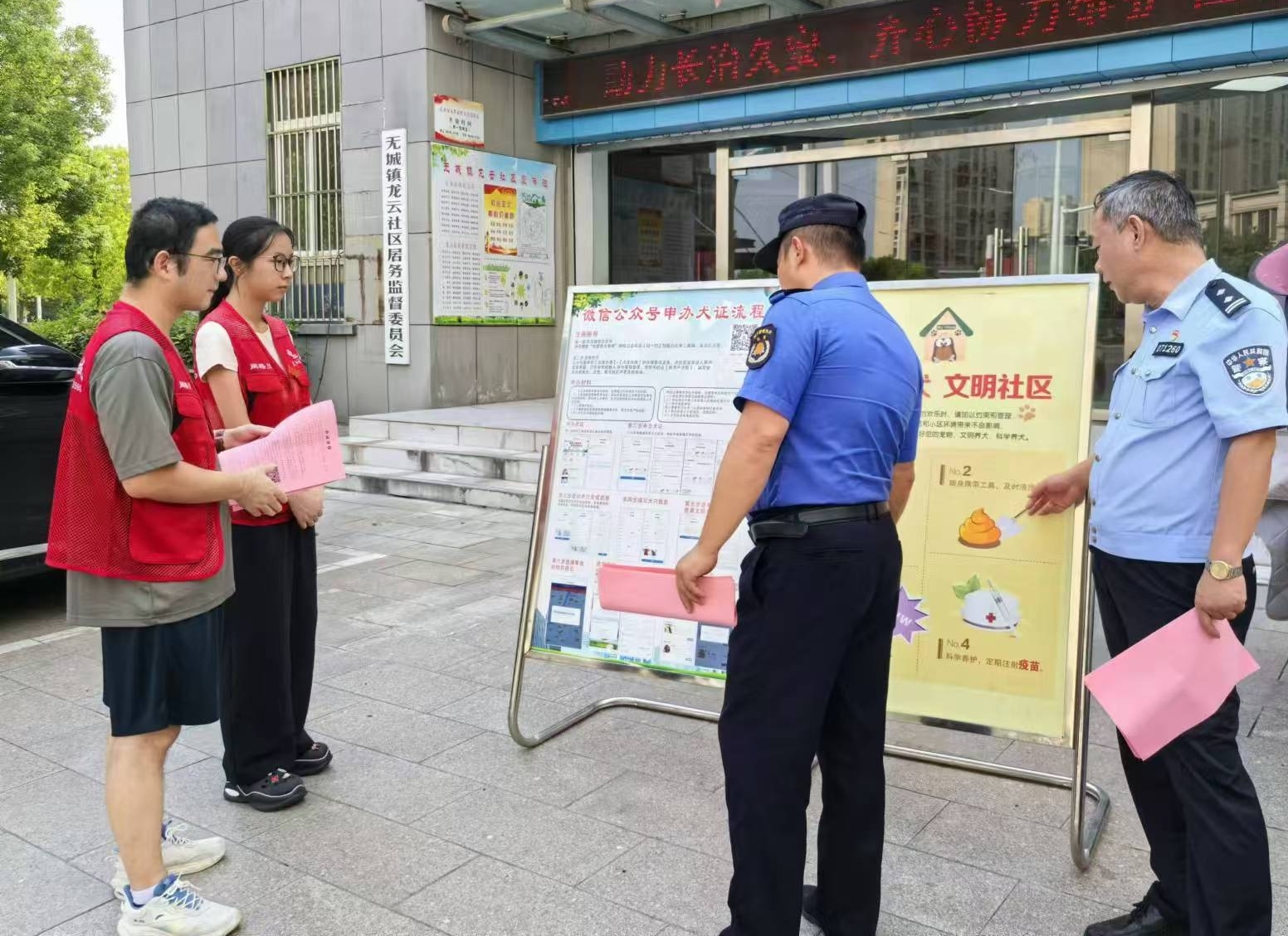 為進(jìn)一步規(guī)范文明養(yǎng)犬行為,營造舒適的生活環(huán)境,保障群眾的健康和人身安全,提升文明形象,引導(dǎo)居民朋友共同打造健康、文明、以人為本的居住環(huán)境。8月26日,龍?jiān)粕鐓^(qū)聯(lián)合無為市養(yǎng)犬管理聯(lián)合辦公室、轄區(qū)內(nèi)物業(yè)公司共同開展“文明養(yǎng)犬在行動”活動,倡導(dǎo)養(yǎng)犬居民文明養(yǎng)犬,規(guī)范文明養(yǎng)犬行為,讓養(yǎng)犬人“寵”愛有方。