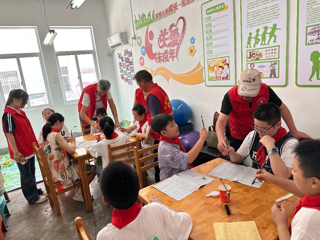 據(jù)悉,課程結(jié)合了社區(qū)的地域特色,他們除了在書法、音樂、體育等課上對孩子們進行輔導(dǎo)外,還增添了傳統(tǒng)節(jié)氣、思想品德、愛國主義教育、交通安全等課程,陪伴21名兒童度過了一個開心難忘的暑期,引導(dǎo)孩子們樹立正確的世界觀、人生觀和價值觀。