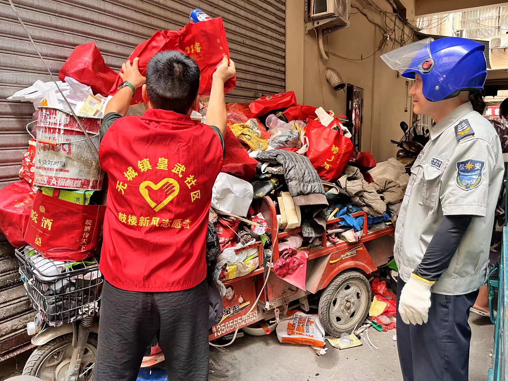 小區(qū)內拾荒老人樓道囤積廢品,網格員巡查后與老人勸說無果。小區(qū)黨支部第一時間入戶走訪,經過反復和拾荒倪阿姨溝通、講事實擺道理,最終,倪阿姨同意將廢品清走。