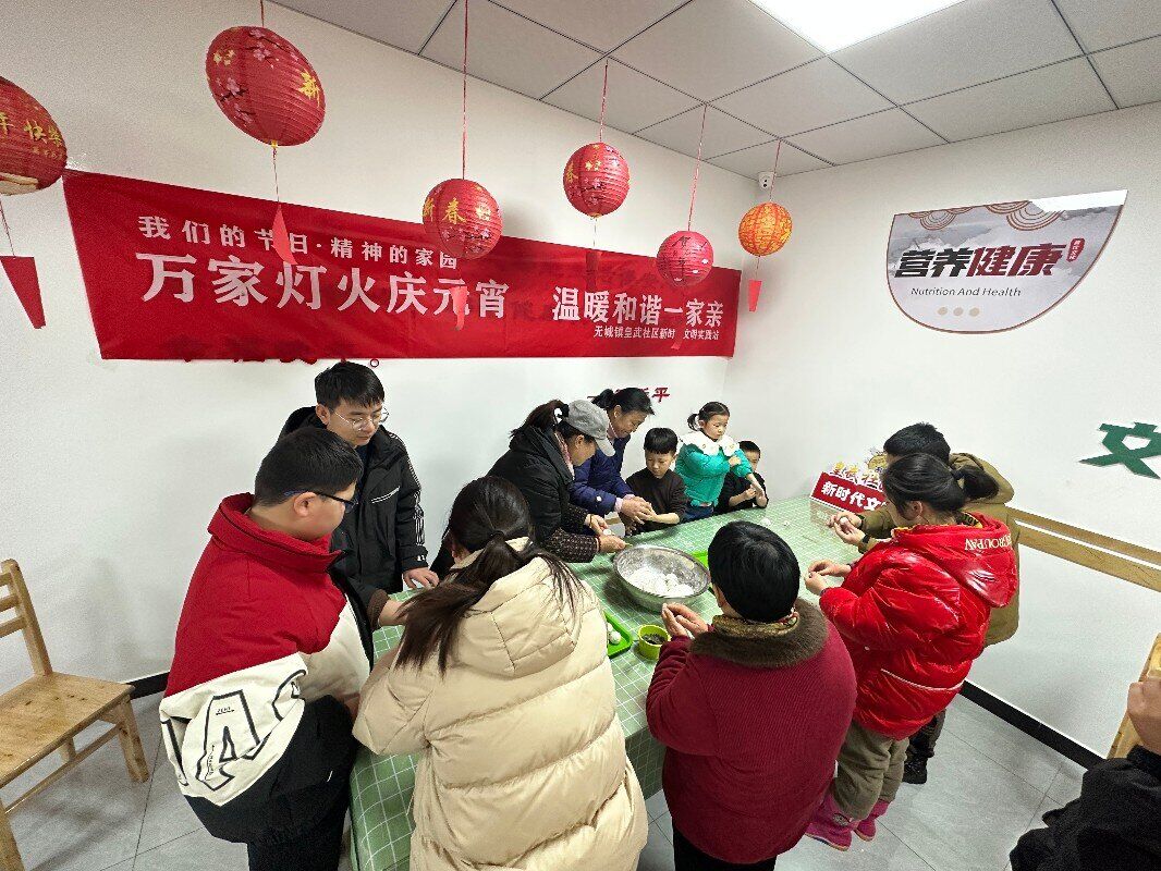圖為元宵節(jié)時(shí)居民一起在社區(qū)食堂包元宵
