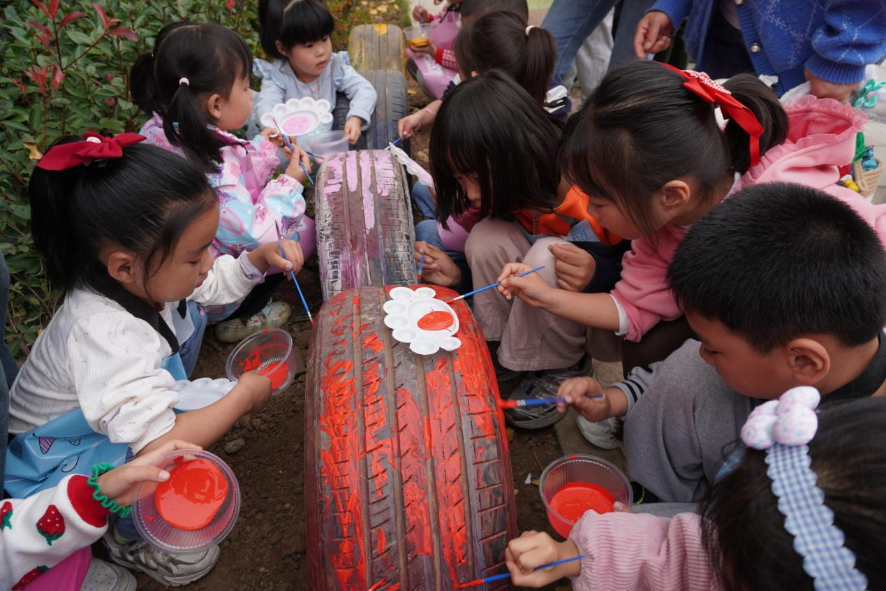 參與者們手拿丙烯顏料、筆刷、水桶、顏料盤等工具大顯身手,充分發(fā)揮豐富的想象力和獨(dú)特畫技,為廢舊輪胎進(jìn)行改造、上色。五顏六色的顏料被筆刷涂鴉在輪胎上,美麗的圖案都給人以無(wú)限的遐想。看著各自的涂鴉成果,大家都十分開心,活動(dòng)現(xiàn)場(chǎng)洋溢著歡樂(lè)的氣氛。