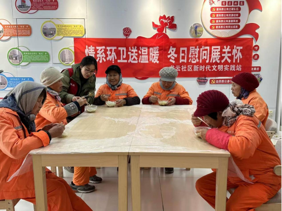活動當(dāng)天,社區(qū)工作人員早早地忙碌起來,準(zhǔn)備了豐盛的餃子宴。熱氣騰騰的餃子端上桌,環(huán)衛(wèi)工人臉上洋溢著幸福的笑容。大家一邊吃著餃子,一邊交流著工作和生活中的點(diǎn)滴,現(xiàn)場氣氛溫暖而融洽。隨后,社區(qū)工作人員為環(huán)衛(wèi)工人發(fā)放了防寒手套。這些手套不僅能為他們在寒冷的冬日里帶來溫暖,更是社區(qū)對他們辛勤付出的一份關(guān)愛和感謝。