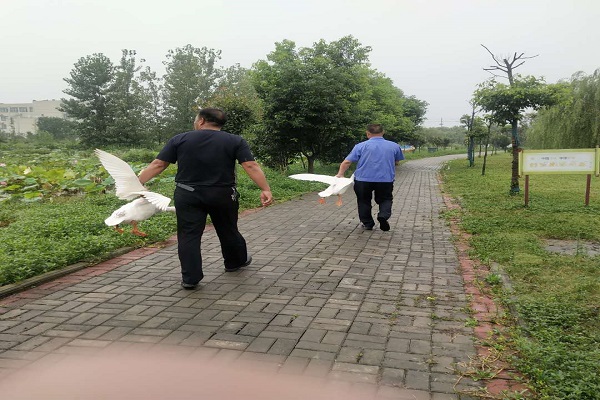 8月5日,在無為市洪巷鎮(zhèn)政務(wù)新區(qū)游步小道上,一抹抹藍(lán)色身影動作敏捷地?fù)]舞著手中“兵器”,不一會就汗流浹背。據(jù)悉,是鎮(zhèn)城管們在驅(qū)逐散養(yǎng)家禽,并對一些“釘子戶”實(shí)施定點(diǎn)清除行動。“周邊農(nóng)戶不聽勸阻執(zhí)意放養(yǎng)家禽,衛(wèi)生臟、亂、差問題突出,嚴(yán)重影響了集鎮(zhèn)文明形象?!?,鎮(zhèn)城管隊(duì)長李榮貴介紹道。