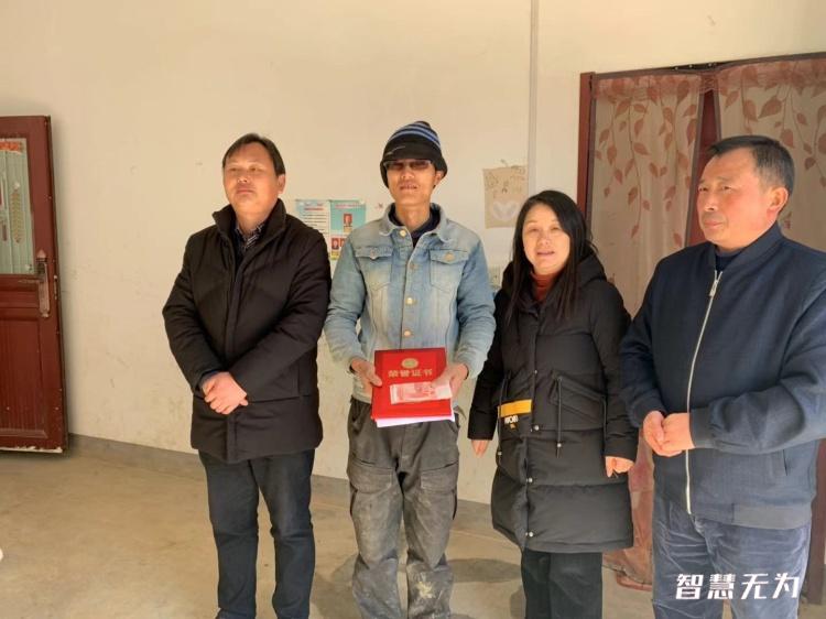 上午十點多,謝發(fā)紅書記等一行人來到伍金志家中,謝書記對伍金志在2020年初疫情防控工做出的貢獻(xiàn)給予了高度的贊揚與肯定,并且期望伍金志能繼續(xù)發(fā)揚優(yōu)良品質(zhì)。應(yīng)市委宣傳部要求,謝書記給伍金志頒發(fā)了榮譽證書并給予1000元慰問金。伍金志笑著接過證書和獎金說道“感謝黨委政府的關(guān)懷,我只是做了我應(yīng)該做的事,沒想到還能給我這樣的榮譽,實在是感激不盡啊?!?/p>