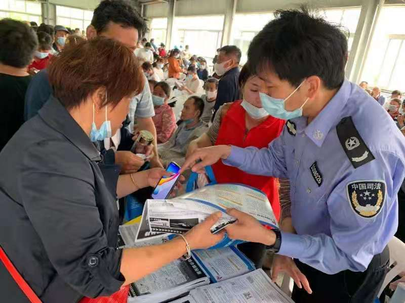 疫苗接種現(xiàn)場(chǎng),鎮(zhèn)綜治辦、司法所、派出所工作人員通過懸掛橫幅、張貼標(biāo)語(yǔ)、發(fā)放宣傳手冊(cè)等方式,積極引導(dǎo)群眾瀏覽宣傳展板及宣傳單內(nèi)容,現(xiàn)場(chǎng)提供法律咨詢服務(wù)、講解相關(guān)法律法規(guī)。各部門精心印制了各類宣傳單頁(yè)、手冊(cè),分別從群眾安全感和政法滿意度、如何抵制邪教、打擊傳銷、毒品的危害、預(yù)防詐騙、非法集資、掃黑除惡及婦女維權(quán)等方面開展多方位宣傳。
