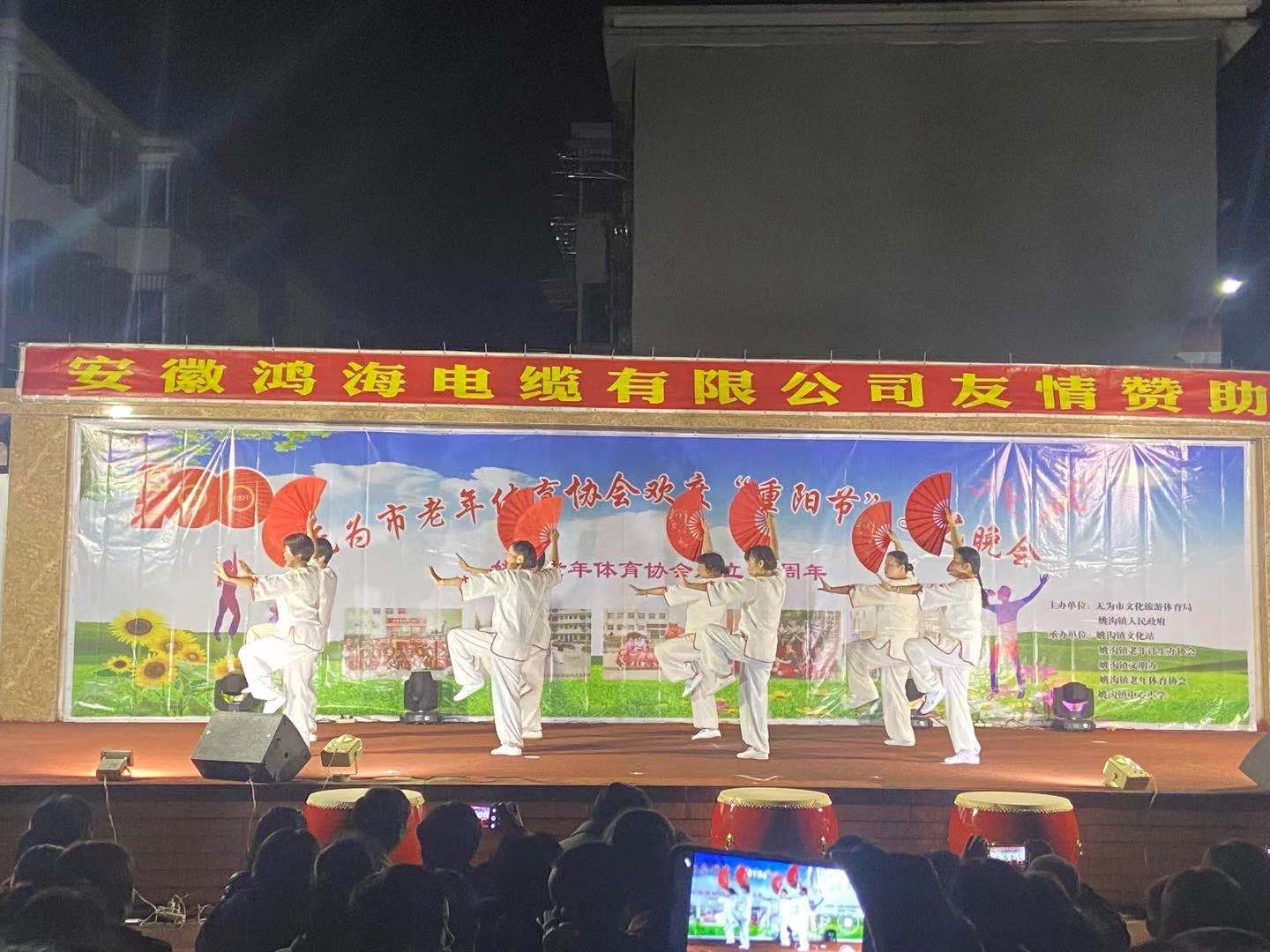 佩戴口罩、掃安康碼、測量體溫,10月17日傍晚,滿懷喜悅準(zhǔn)備觀看文藝匯演的觀眾正在工作人員引導(dǎo)下有序進(jìn)入姚溝鎮(zhèn)中心小學(xué),一場由無為市文化旅游局和姚溝鎮(zhèn)人民政府主辦、鎮(zhèn)文化站和鎮(zhèn)老年體育健身協(xié)會承辦的文化盛宴即將在這里上演。