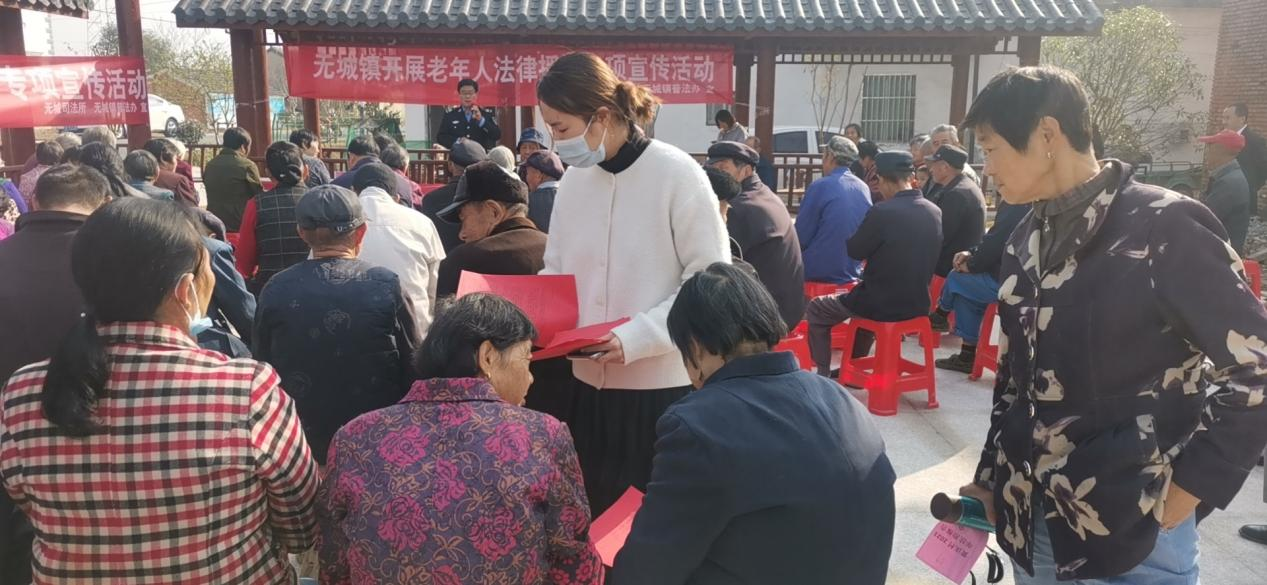 活動現(xiàn)場首先由無城司法所肖仁壽向村民們普及了民法典、老年人權(quán)益保護(hù)法、法律援助法等法律法規(guī),并重點(diǎn)圍繞與老年人息息相關(guān)的家庭贍養(yǎng)與撫養(yǎng)、法律援助申請、防詐騙等內(nèi)容進(jìn)行宣傳講解,由于老年人對于有關(guān)法律專業(yè)術(shù)語認(rèn)識比較淺薄,肖所長用生活中的通過真實(shí)案例簡單化向村民們進(jìn)行講解,力爭讓村民們能夠聽得懂,學(xué)得會,用得上。