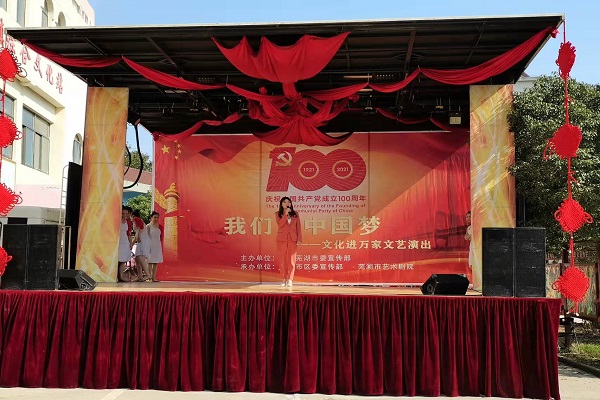 11月1日,暖陽(yáng)和煦,天朗氣清,在無(wú)為市洪巷鎮(zhèn)文化站周邊人頭攢動(dòng),群眾目視前方,翹首以待。隨著車(chē)載大舞臺(tái)各項(xiàng)準(zhǔn)備工作進(jìn)入尾聲,一場(chǎng)群眾期待已久的“視聽(tīng)”盛宴在主持人聲情并茂地開(kāi)場(chǎng)白中拉開(kāi)帷幕。據(jù)悉,此次文藝演出旨在慶祝中國(guó)共產(chǎn)黨成立100周年,進(jìn)一步豐富基層群眾精神文化生活,切實(shí)提升群眾的幸福感。