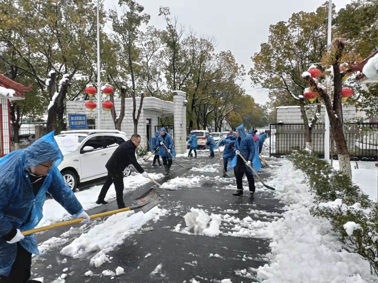 2022年2月7日,農(nóng)歷初七凌晨,一場(chǎng)大雪突如其來(lái),給江淮大地披上新年“銀裝”,雪景雖然美麗,卻給人們的出行帶來(lái)了很大的不便,為應(yīng)對(duì)惡劣天氣,確保居民出行安全,劉渡鎮(zhèn)黨委、政府高度重視,快速啟動(dòng)應(yīng)急工作預(yù)案。劉渡鎮(zhèn)新時(shí)代文明實(shí)踐所(站)組織黨員、志愿者、環(huán)衛(wèi)工作人員,在轄區(qū)主干道和多處陡坡路段積極開(kāi)展鏟雪除冰行動(dòng)。