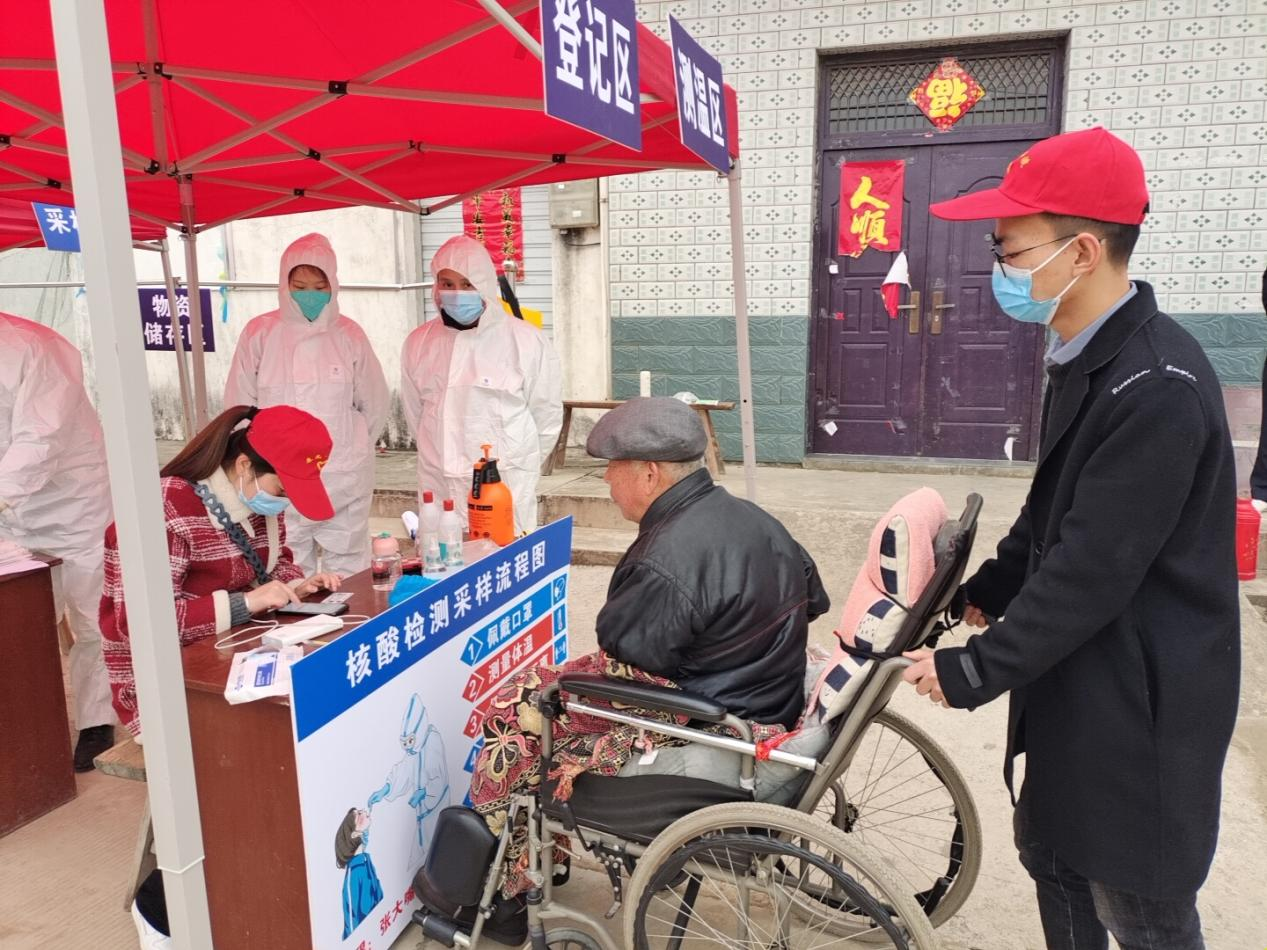在張廟村畢村核酸檢測點,一位爺爺坐著輪椅來做核酸,志愿者小鄒看到后,立即跑去幫爺爺推輪椅,并和爺爺交流到:“阿爹,您過來不便,我們已經(jīng)安排醫(yī)護人員上門給您上門做核酸檢測,您不用自己過來的”?!澳銈兝眯菹r間給我們這么多人做核酸檢測,已經(jīng)很辛苦了,我也想給你們減輕點負(fù)擔(dān)?!睜敔斝χf道。簡單的話語,透露出的是一份惺惺相惜的信任與感動。