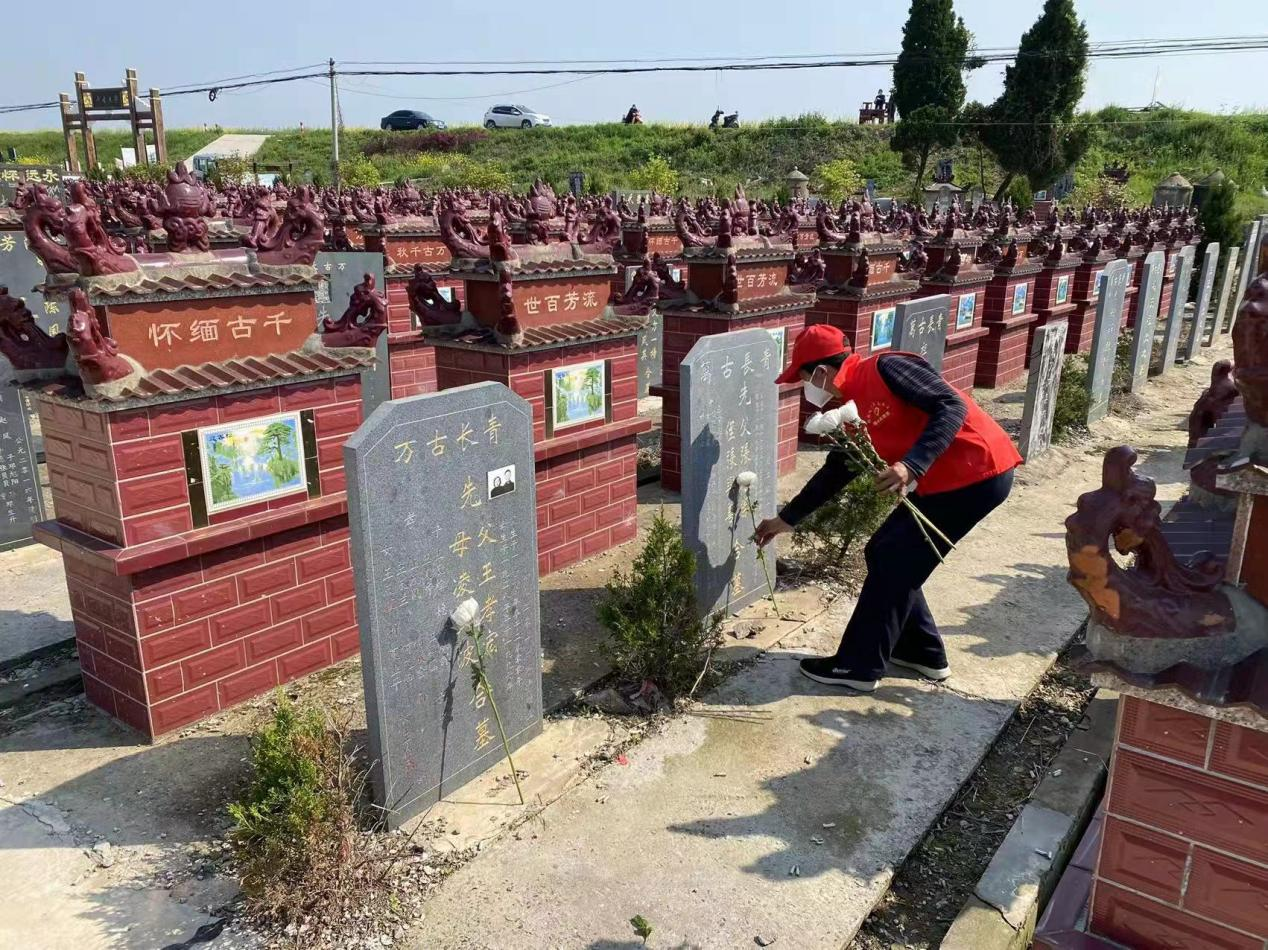 據(jù)了解,周閘村龍?zhí)翞?800多個(gè)墓穴,志愿者們逐一對(duì)每一個(gè)墓穴進(jìn)行敬獻(xiàn)鮮花、清掃環(huán)境、擦拭墓碑等“代祭掃”服務(wù),確保不漏一個(gè),讓群眾安心放心。