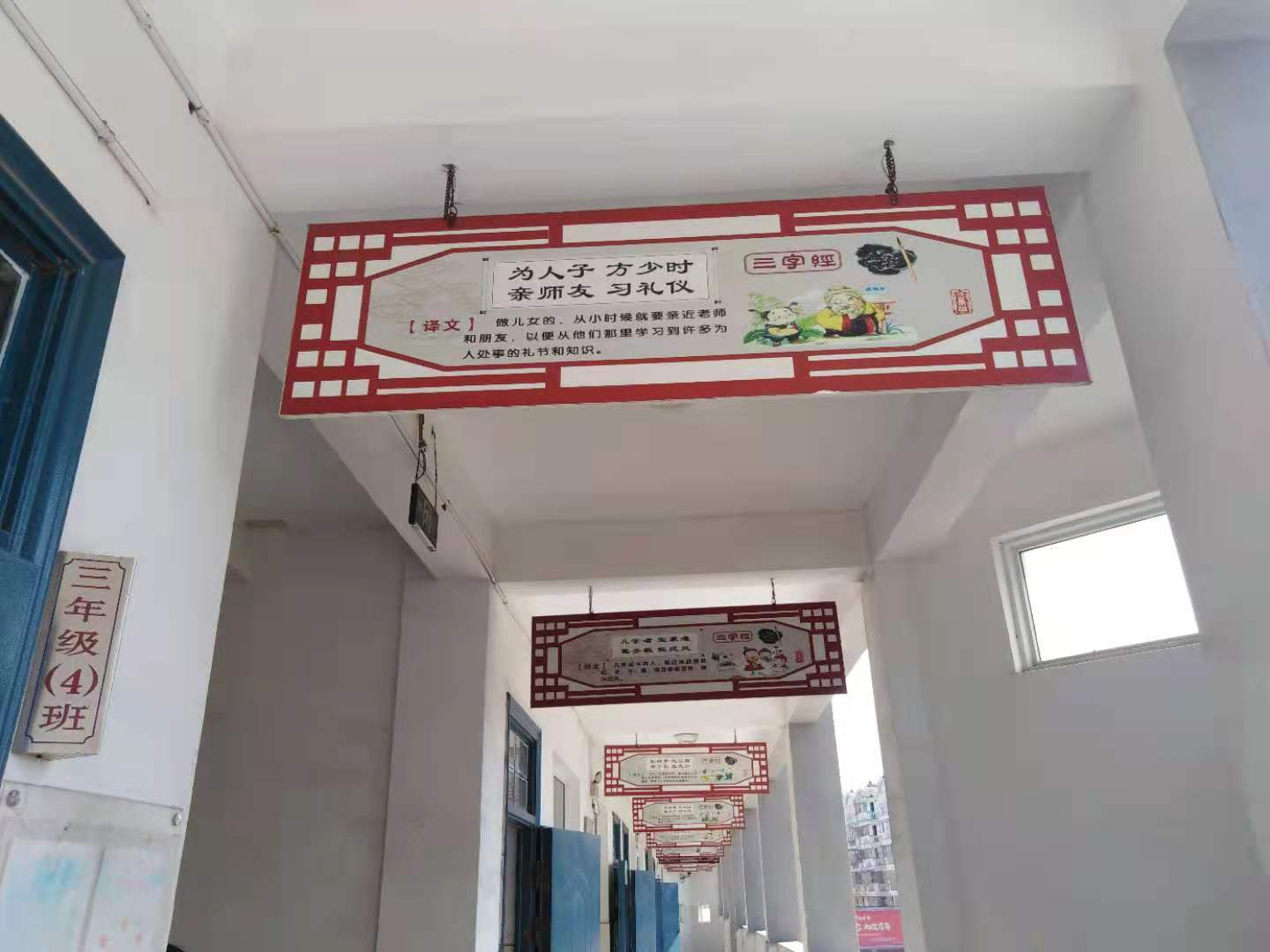 國學(xué)經(jīng)典,源遠(yuǎn)流長。從秦風(fēng)、漢賦里走來,從唐詩、宋詞里走來,一路婉約,一路奔放。如潺潺的流水,洞穿千古,滋潤心靈的感動(dòng);如璀璨的星空,光照日月,輝煌中華五千年的文明史。激情五月,攜一縷暖陽,步入無為市高溝鎮(zhèn)渡江希望小學(xué),那一句句包含哲理的經(jīng)典國學(xué)、哲理名言,在校園靈動(dòng),蒼莽深邃,擲地有聲。讓道德滋潤童心,讓經(jīng)典灑滿校園。