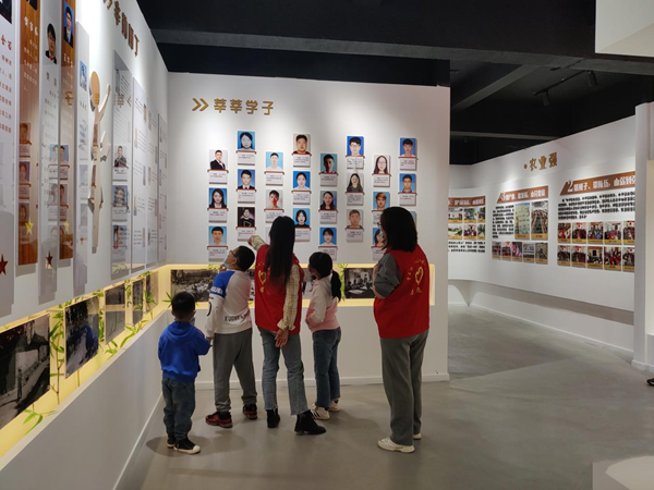 圖為志愿者為孩子們介紹村史館相關知識。