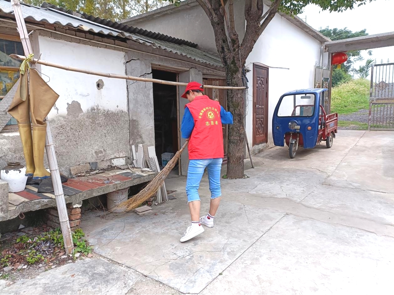 活動中,志愿者在公告欄上張貼繁昌區(qū)“13+2”暖民心活動海報,向村民介紹“十五項暖民心”行動的具體內(nèi)容,告知村民行動的整體成效。其中,特別提到前段時間宣傳的“愛回家”活動,鼓勵在外務(wù)工人員回家就業(yè),照顧老人、小孩。隨后,志愿者來到老人家中,拿起掃帚和抹布開始忙活起來,為老人掃地、擦桌子,整理衣物、歸置物件、打掃庭院,將困難老人家中的雜物分類整理,垃圾、廢棄物全面清理。