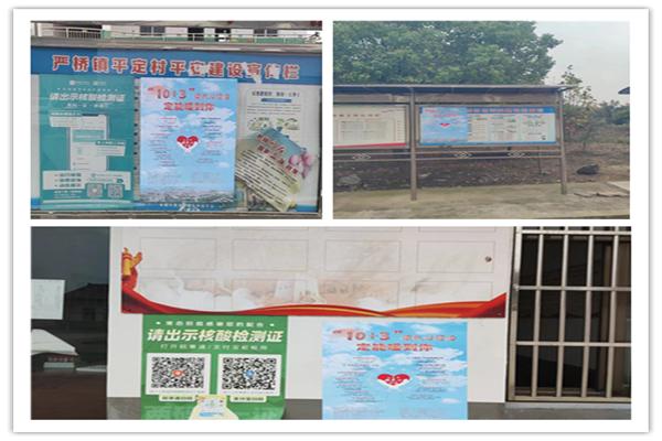堅持“點上+面上”結(jié)合做宣傳。嚴橋鎮(zhèn)堅持“橫幅掛起來、海報貼起來、顯示屏亮起來、廣播響起來、宣傳車跑起來”,加大面上宣傳效果。目前,已經(jīng)設(shè)置橫幅8條,海報108幅,電子屏播放290小時,使用應急廣播18個,每日播放8小時,鎮(zhèn)政府出動兩臺車輛在白天進行不間斷宣傳;同時,以全員核酸檢測為契機在各檢測點發(fā)放“一封信”14000封,進一步提高宣傳針對性。