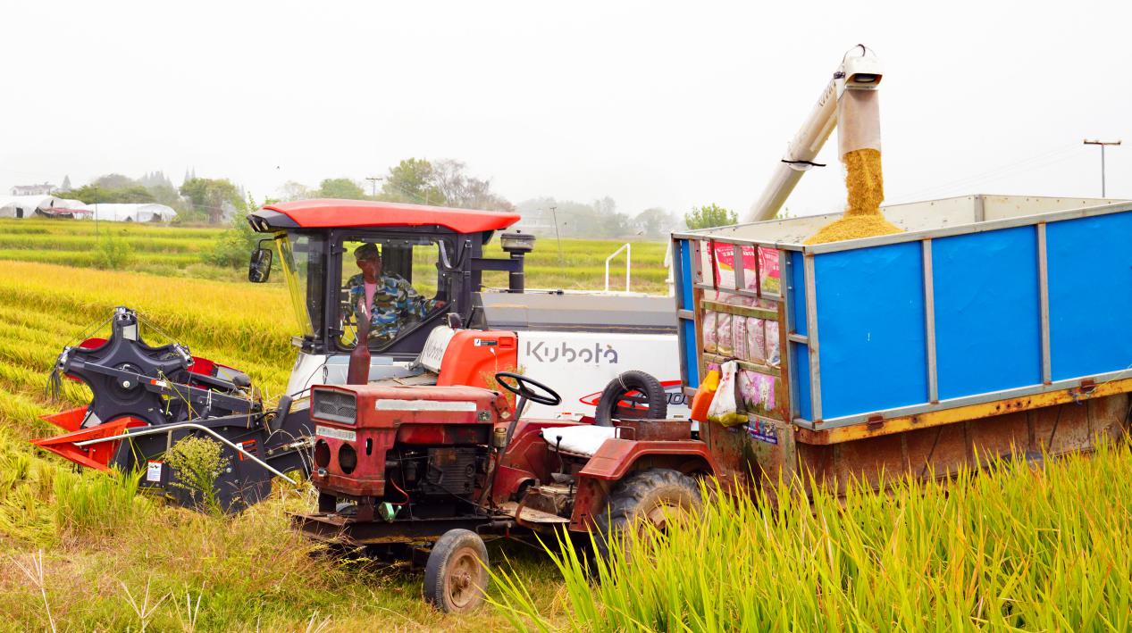 一片金燦燦的稻田映入眼簾,稻穗沉甸甸地彎腰低頭,這里便是實(shí)現(xiàn)增產(chǎn)增收的富硒水稻種植基地。在水稻種植基地可以看到,收割機(jī)在稻田里來回穿梭,隨著收割機(jī)耙禾器的轉(zhuǎn)動,秸稈還田機(jī)緊跟作業(yè),谷粒稻草有序分離,機(jī)器過后留下一排排整齊的稻茬,切割、脫粒、粉碎稻稈等工序一氣呵成。
