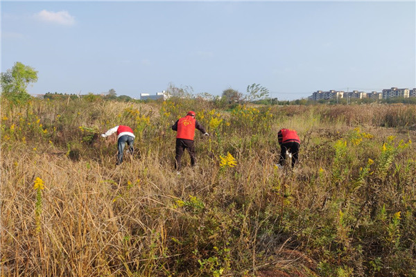 加拿大“一枝黃花”作為外來(lái)入侵植物,又被稱為“生態(tài)殺手”,會(huì)對(duì)生物多樣性和農(nóng)作物安全生產(chǎn)造成極大危害。11月1日下午,泉塘鎮(zhèn)新時(shí)代文明實(shí)踐所志愿者在泉塘社區(qū)開(kāi)展“加拿大一枝黃花”集中清除志愿活動(dòng),助力維護(hù)生態(tài)平衡,筑牢生態(tài)環(huán)境安全屏障。