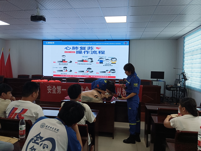 為切實(shí)做好預(yù)防青少年兒童溺水工作,有效提升防溺水安全教育及自救能力。2022年7月13日上午,無為市開城鎮(zhèn)邀請無為市藍(lán)天救援隊(duì)開展了防溺水安全教育及急救知識講座。鎮(zhèn)村防溺水工作人員、大學(xué)生志愿者、巡邏員、家長代表及學(xué)生代表共計(jì)100余人參會。