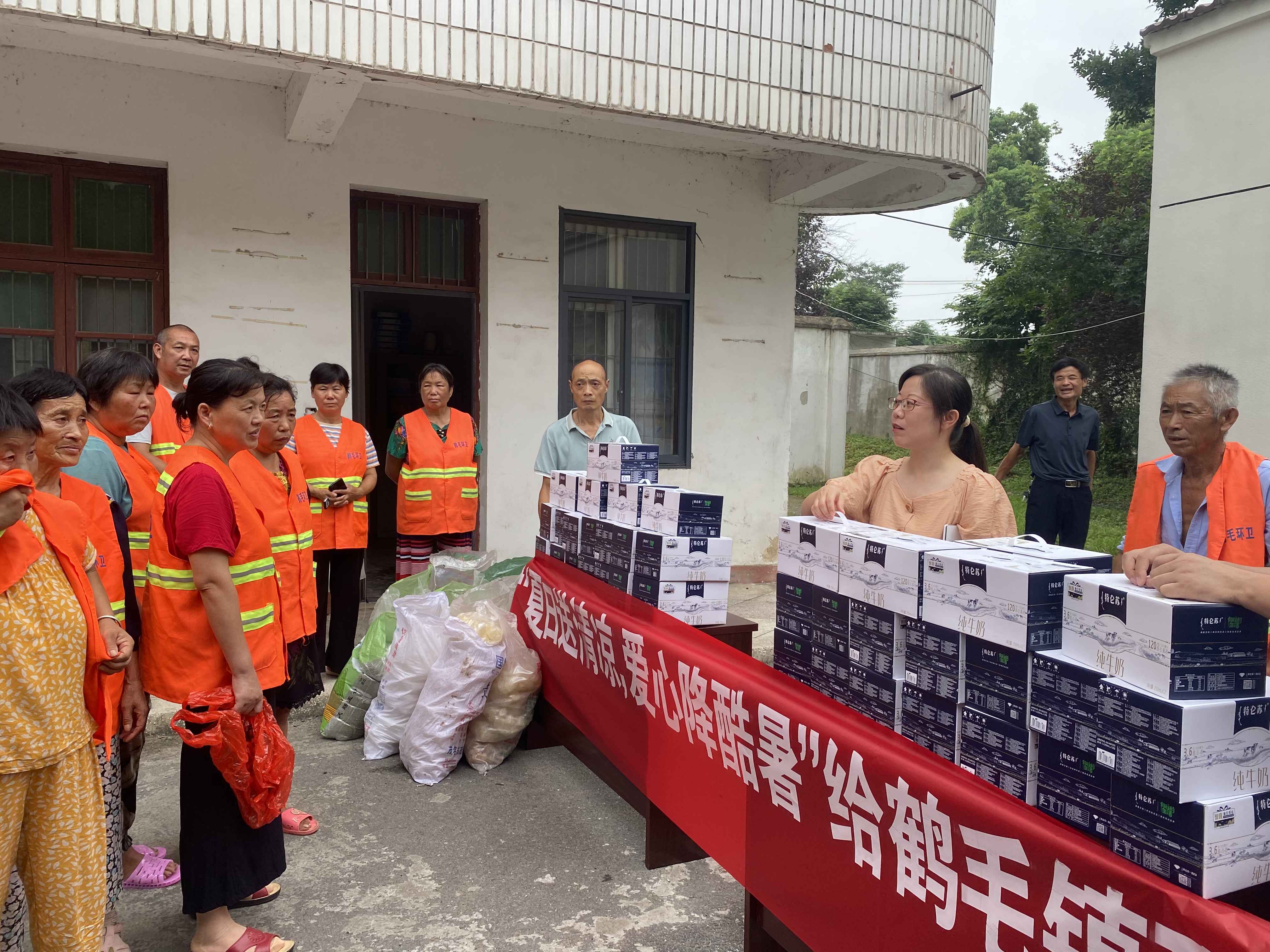 活動中,鶴毛鎮(zhèn)黨委副書記俞韻文對58名環(huán)衛(wèi)工人為鶴毛鎮(zhèn)的整潔干凈所付出的辛勤努力表示感謝,同時還聽取了一線環(huán)衛(wèi)工人的心聲和意見,并叮囑他們在高溫時段,一定要合理安排作息時間,注意身體,做好防暑降溫工作?!斑@些環(huán)衛(wèi)工人每天頂著烈日高溫、堅守崗位,為鶴毛鎮(zhèn)創(chuàng)造干凈整潔的生活環(huán)境,在平凡的崗位上默默無聞地做出不平凡的事業(yè)”,宣統(tǒng)委員金別勇說。隨后,為他們一一送去牛奶、綠豆、冰糖等慰問品。