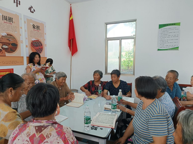 一把扇子,拉家常。活動現(xiàn)場村上村兩委和后備干部發(fā)放“暖民心行動”內(nèi)容的團扇、“老有所學” 暖民心行動宣傳彩頁,廣泛宣傳老有所學暖民心活動的意義,村黨總支書記與老年人共同商量和宣傳村里的相關(guān)事情。太平村黨總支書記陳正桂和老年人講:“養(yǎng)老服務站是村委會與村民溝通的平臺,也是老人文化娛樂活動的場所。就是想豐富村里老年人的精神文化生活,讓村民們的精神生活更充實、更滿足、更幸福?!?/p>