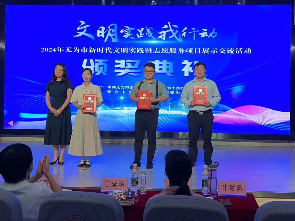 “樂(lè)享銀齡”文明實(shí)踐項(xiàng)目“2024年無(wú)為市優(yōu)秀文明實(shí)踐項(xiàng)目三等獎(jiǎng)”(右二)