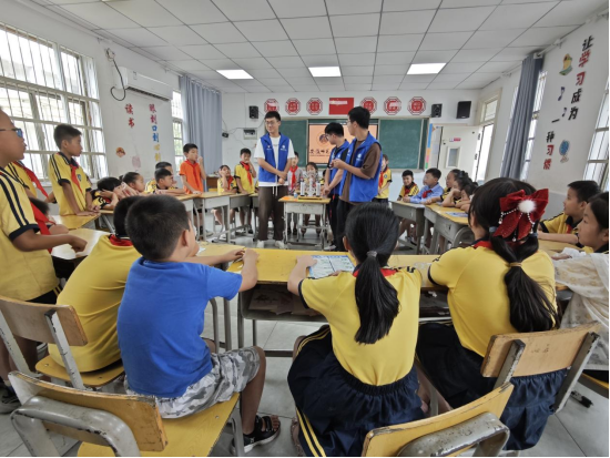 課程設(shè)置突破傳統(tǒng)托管模式,秉持“五育融合”理念,涵蓋文化、藝術(shù)、科技、體育與實(shí)踐等多維度內(nèi)容。清晨,是“書香晨讀”和“作業(yè)輔導(dǎo)”時(shí)間,孩子們?cè)诖髮W(xué)生志愿者的帶領(lǐng)下溫故知新,養(yǎng)成良好的學(xué)習(xí)習(xí)慣。午后,則進(jìn)入了活力四射的“興趣時(shí)光”。創(chuàng)意美術(shù)課上,孩子們用畫筆描繪心中的奇思妙想;音樂律動(dòng)中,稚嫩的歌聲與歡快的節(jié)奏交織成最美妙的樂章;科學(xué)實(shí)驗(yàn)課上,一個(gè)個(gè)有趣的物理、化學(xué)現(xiàn)象激發(fā)了孩子們探索未知的濃厚興趣;足球、籃球競(jìng)技則鍛煉了他們的邏輯思維與團(tuán)隊(duì)協(xié)作能力。此外,安全主題教育如“防溺水”“反詐騙”也融入日常,切實(shí)拓寬了孩子們的視野。