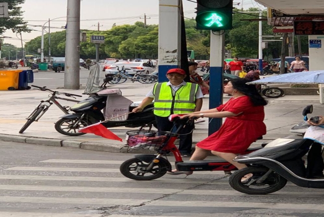 6月5日早上7:10分左右,局領導趙越、機關干部丁中貴、汪慧、黃子木等4名志愿者在提前到達南門城門口執(zhí)勤點后,大家快速穿上反光背心、戴上小紅帽、拿好口哨和小紅旗,立即投入到了“禮讓斑馬線”文明勸導志愿服務活動中。雖然時間只一個多小時,但大家在執(zhí)勤過程中,都能認真履行職責,不時舉起小紅旗,吹響口哨,提醒機動車禮讓行人,指揮、疏導非機動車和行人過馬路,得到了市交警同志和廣大市民的一致稱贊,較好地營造了該地段安全暢通、文明和諧的交通環(huán)境。