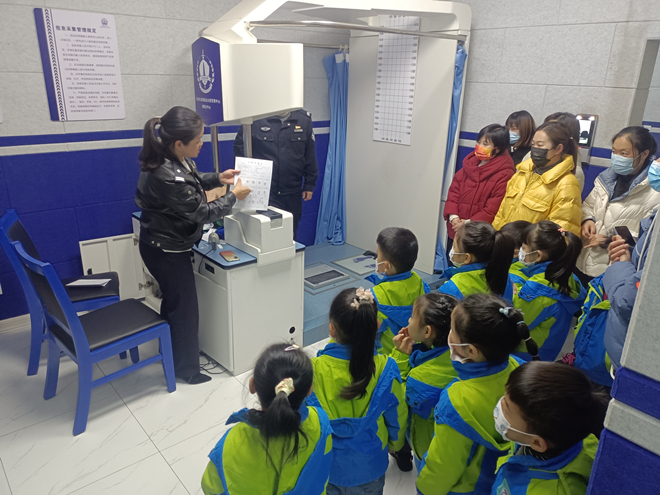 該所民警陳玲先后帶同濟(jì)幼兒園的大班幼兒參觀了接處警大廳、綜合指揮大廳等。在綜合指揮大廳內(nèi),面對偌大的“天網(wǎng)”系統(tǒng)監(jiān)控視頻,陳玲結(jié)合真實(shí)案例,用生動有趣的語言,向小朋友們講解如何注意交通及生命安全。在執(zhí)法辦案中心里,陳玲向小朋友們介紹了人身檢查室、信息采集室、詢問室、候問室及辨認(rèn)室??吹奖嬲J(rèn)室里的單向玻璃,孩子們非常好奇,圍著警察阿姨陳玲問這問那,“壞人關(guān)在哪里?壞人能吃到好吃的嗎?”稚嫩的笑臉和童趣的問題讓執(zhí)法辦案中心里的嚴(yán)肅氣氛頓時(shí)變得歡樂起來!