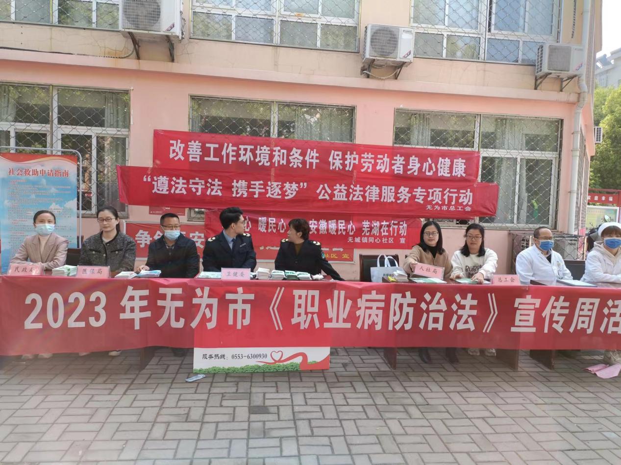 2023年4月25日至5月1日是第21個《職業(yè)病防治法》宣傳周,為深入宣傳貫徹《職業(yè)病防治法》,切實保障廣大勞動者職業(yè)健康權(quán)益,4月26日上午,無為市衛(wèi)健、民政、人社、醫(yī)保、總工會等五部門前往同心社區(qū)開展了職業(yè)病防治知識進社區(qū)宣傳活動。