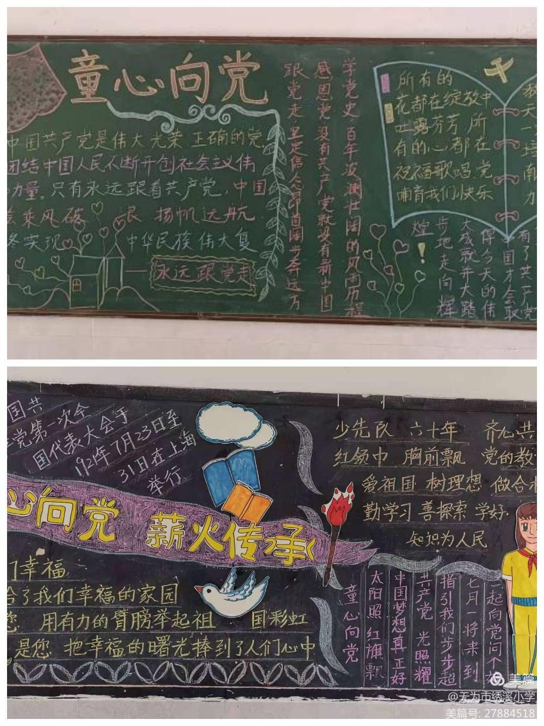 開展黑板報(bào)比賽。“童心向黨,薪火傳承”激發(fā)了少先隊(duì)員們感黨恩、聽黨話、跟黨走,從我做起,立志報(bào)國的遠(yuǎn)大理想。