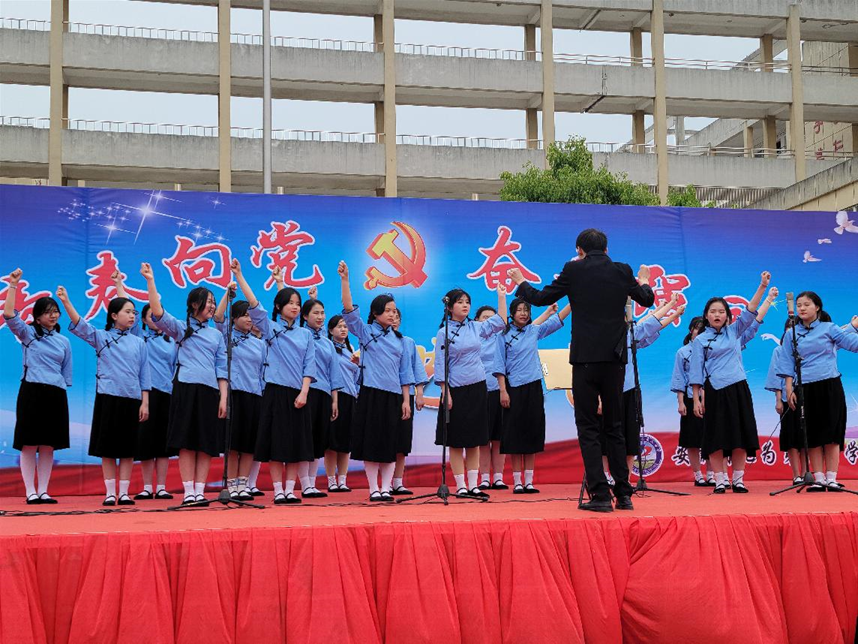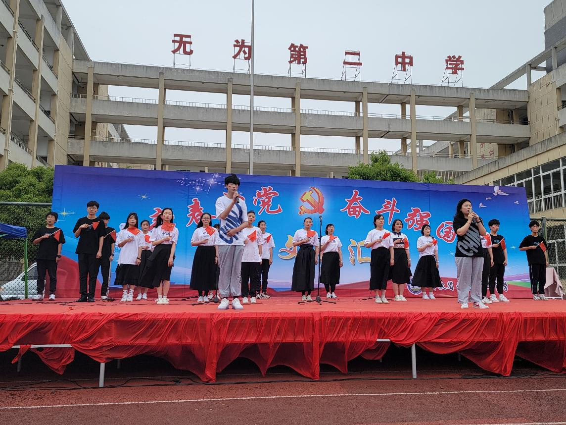 青春向黨,奮斗強(qiáng)國——無為二中慶祝建黨100周年暨紀(jì)念“五四運(yùn)動(dòng)”102周年文藝匯演,學(xué)生合唱《我和我的祖國》。