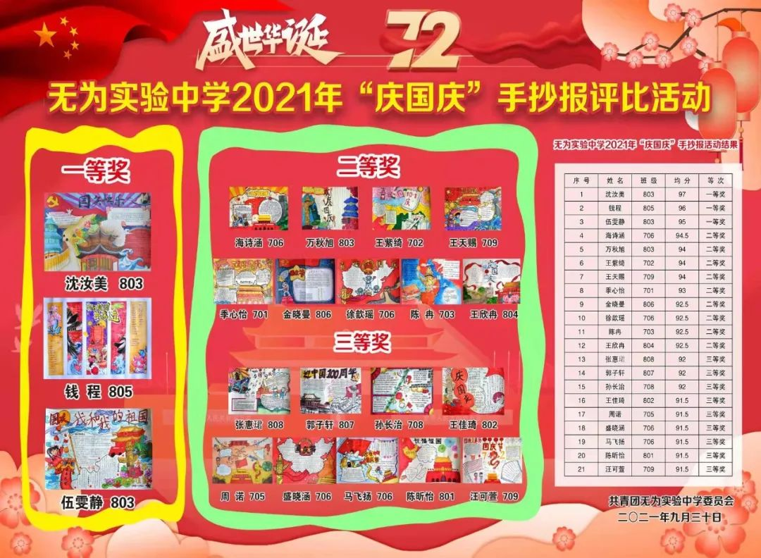 無為實驗中學舉辦2021年“慶國慶”手抄報評比活動。