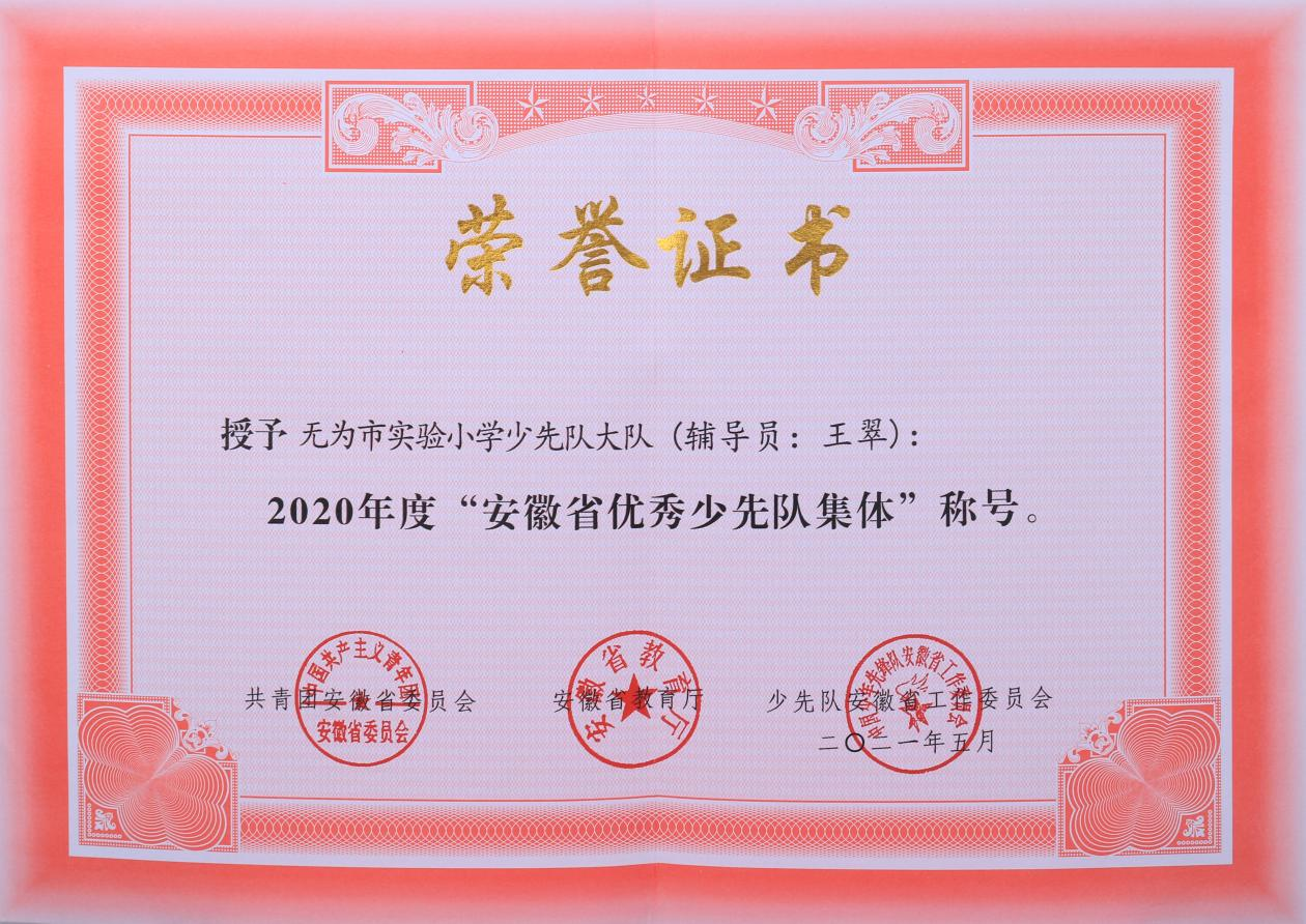學校先后榮獲“安徽省未成年人思想道德建設示范學?!薄鞍不帐‰娀逃龑W校”“安徽省語言文字規(guī)范化示范學?!薄笆徍薪逃到y(tǒng)先進集體”“蕪湖市平安校園”“蕪湖市文明校園”“蕪湖市三年辦學水平評估優(yōu)秀等級”“蕪湖市毒品預防教育學校”“蕪湖市五好關工委單位”“無為縣文明創(chuàng)建先進單位”“無為縣繼續(xù)教育先進集體、教師全員培訓先進集體”等稱號。學校少先隊組織被評為“安徽省雛鷹紅旗大隊”“安徽省優(yōu)秀少先隊大隊”“蕪湖市優(yōu)秀少先隊集體”等。