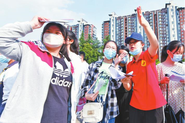 圖為昨日下午,考生在考場(chǎng)“踩點(diǎn)”,熟悉入場(chǎng)流程、考試環(huán)境。
