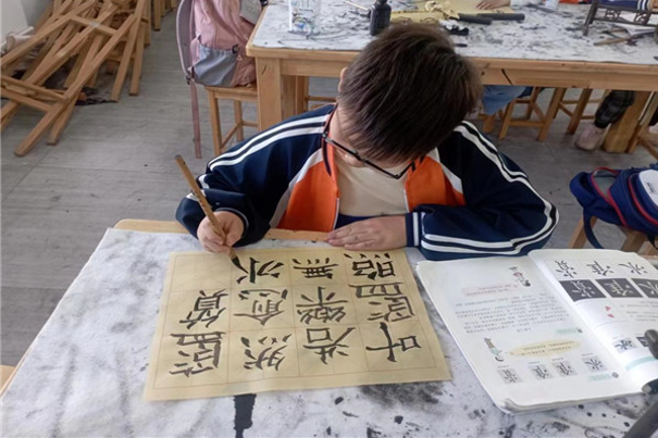 圖為泉塘鎮(zhèn)鄉(xiāng)村學(xué)校少年宮開(kāi)展書(shū)法活動(dòng)