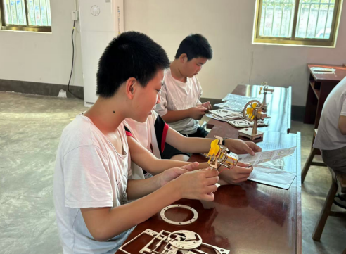 在工作人員和志愿者的指導(dǎo)下,孩子們開始動(dòng)手組裝風(fēng)扇,小朋友們按照圖紙步驟,逐步操作拼接、安裝螺絲、整理電線、組裝風(fēng)扇和電機(jī)、學(xué)習(xí)電路連接知識(shí),大家交流制作流程和心得體驗(yàn),在組裝過程中強(qiáng)化溝通,增進(jìn)彼此友誼。在小朋友們的巧手下,一個(gè)個(gè)風(fēng)扇制作完成,孩子們體驗(yàn)著小風(fēng)扇帶來的涼爽。
