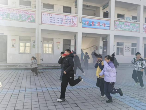 各樓層安全崗導護教師迅速就位,沉著指揮。各班學生在班主任的帶領(lǐng)下,嚴格按照應(yīng)急預案要求,用濕毛巾捂住口鼻,彎腰低姿,沿著預定疏散路線,快速、有序地從教學樓撤離至學校操場的安全地帶。