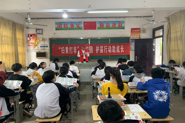 在原有“你中有我,我中有你”的基礎(chǔ)上,將“掃黃打非”工作與文化體育活動(dòng)進(jìn)一步深度植入融合,實(shí)現(xiàn)了“你就是我,我就是你”的質(zhì)的提升,潤物無聲地滋養(yǎng)廣大群眾的道德情操,厚植健康向上的正能量。鎮(zhèn)村文化廣場(chǎng)、圖書室、為民服務(wù)中心都在顯著位置標(biāo)識(shí)宣傳“掃黃打非”內(nèi)容。常態(tài)化開展“紅五月”、“慶國慶”、“我們的節(jié)日”、文體比賽、愛國主義教育、道德講堂等活動(dòng),積極倡樹社會(huì)新風(fēng)尚。轄區(qū)內(nèi)中小學(xué)發(fā)揮教育主陣地作用,每學(xué)期組織開展“掃黃打非”主題班會(huì)、展板宣傳等活動(dòng),教育引導(dǎo)師生遠(yuǎn)離“黃”“非”毒瘤,打造陽光健康、積極向上的精神家園。